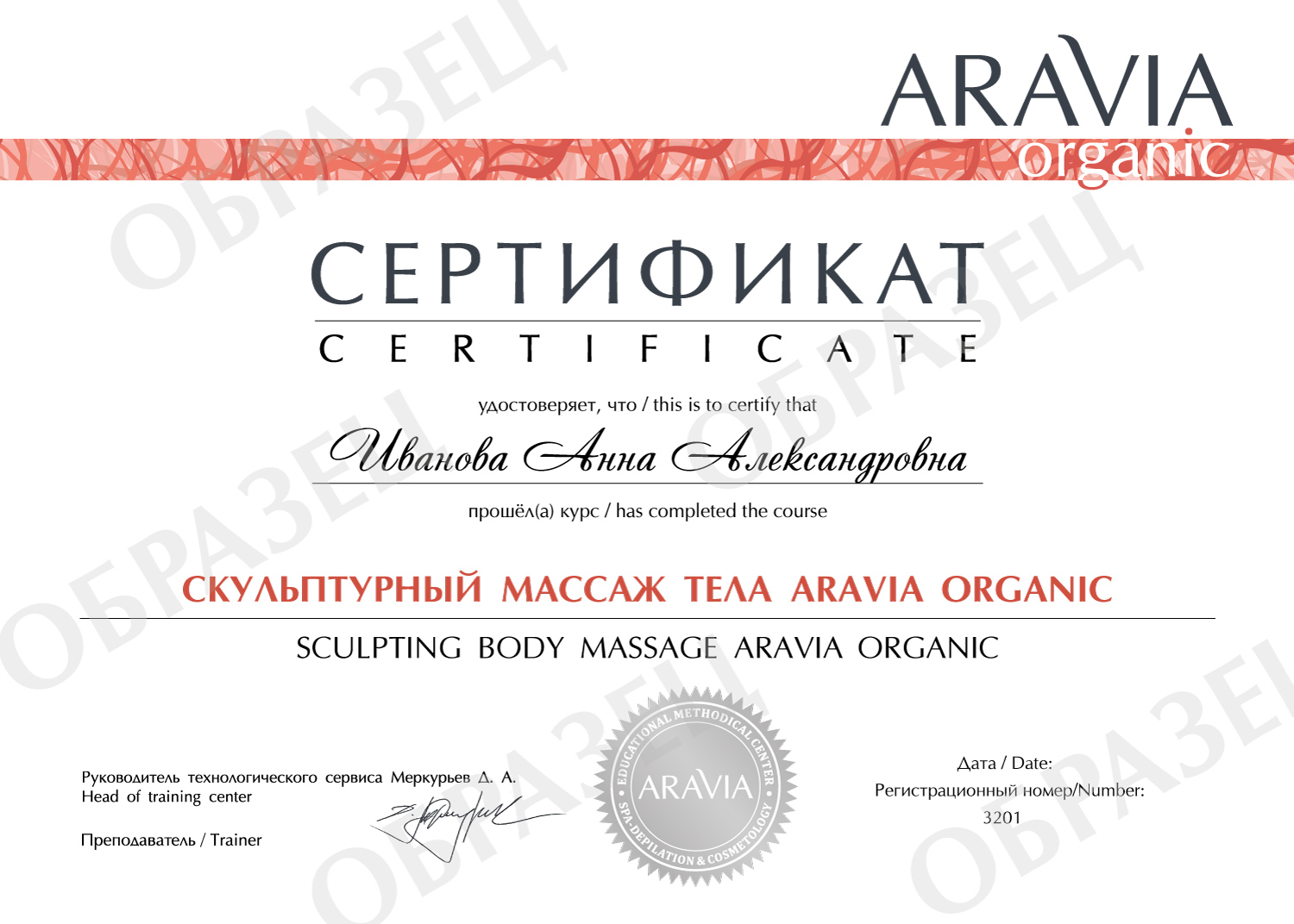 При единовременной покупке обучений по трём массажам тела: «Корректирующий лимфодренажный массаж тела ARAVIA Organic», «Антицеллюлитный массаж ORGANIC SLIM» и «Скульптурный массаж тела ARAVIA Organic» и четвёртому на выбор: «Профессиональные техники релакс-массажа и SPA –обертываний» или «Массаж спины и головы», Вы получаете Золотой сертификат «Эксперт массажных техник по телу» (в дополнении к основным сертификатам по каждому массажу) и скидку* на размер закупки для бесплатного обучения. Наборы входят в закупку, стоимость обучения без закупки — 15 000 руб.
