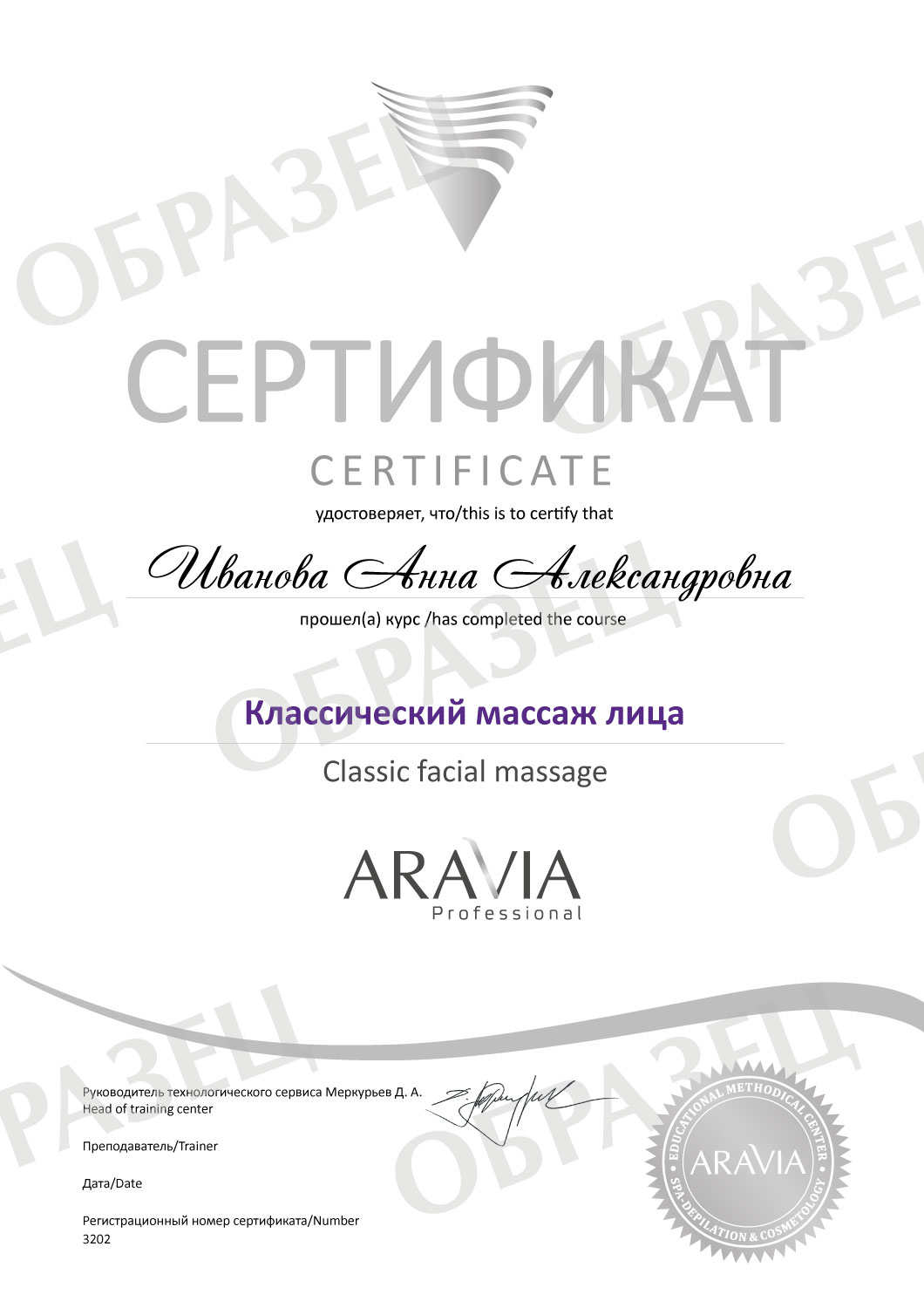 После прохождения курса участники получат пособие по массажу, каталоги средств, прайс-листы и именной сертификат о прохождении обучения по направлению «Классический массаж лица».