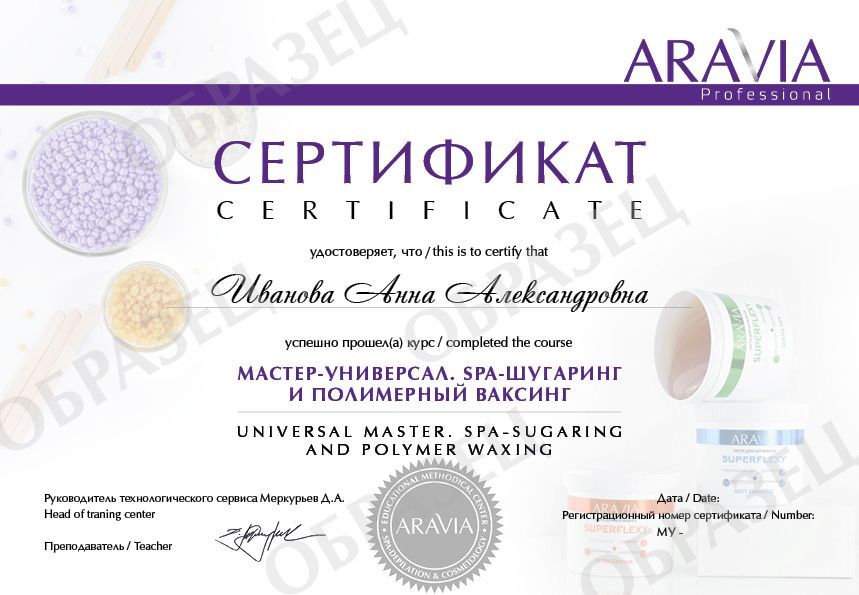 Я проходила двухдневный курс "Мастер-универсал. Spa-шугаринг и полимерный ваксинг в учебном центре Аравия в СПб у преподавателя Ихсановой Ирины.